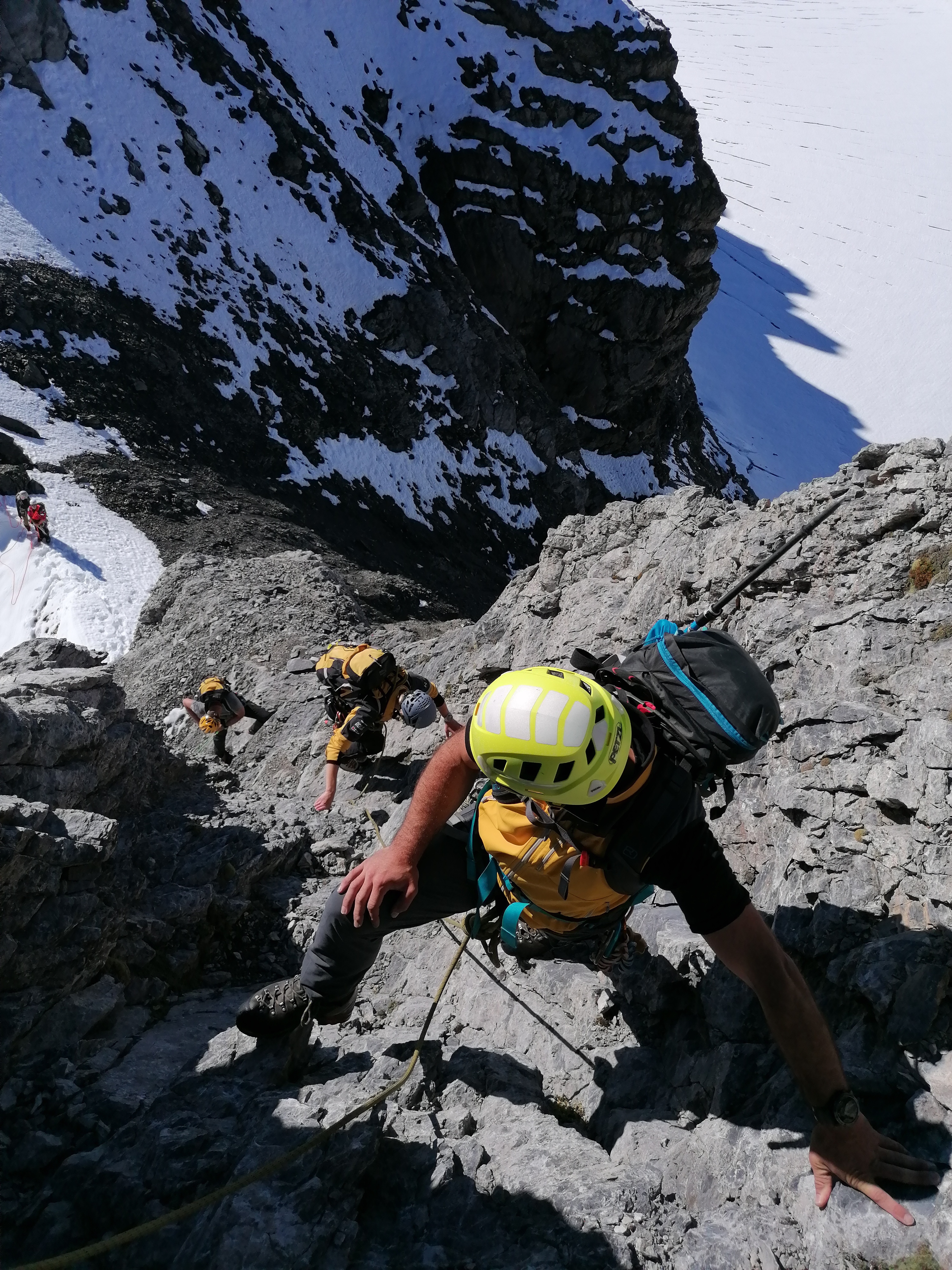 Dank der Unterstützung durch die Kraftwerke Linth-Limmern der AXPO können die Bergretter mit unterirdischen Seilbahnen, durch Stollen und über Lifte sicher und rasch bis zur Staumauer des Muttsees aufsteigen.